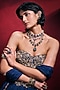 Tamanna Punjabi Kapoor presents a mesmerizing royal blue crushed lehenga crafted in habutai silk base, adorned with intricate stone, mirror, pearl, sequin, dori, nakshi, zari and patra work. It is paired with an embroidered blouse and a dupatta. Accentuate with statement jewellery and embellished heels for a refined festive look, perfect for weddings and sangeet ceremonies.