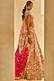 Featuring a wine and fuchsia lehenga in brocade silk and organza silk base with paisley, zari, resham, sequins, pearls, dori, salli and mirror embroidery. It is paired with an embroidered sleeveless choli and a sheer embroidered dupatta. Accentuate the designer lehenga with kundan polki or gold jewellery, embellished heels and a potli bag for a bridal look, Perfect wear for your wedding or engagement ceremony.