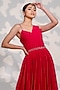 Featuring a hot pink one-shoulder pleated gown in georgette base with crystal hand embroidery.