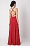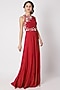 Featuring a red cross-back gown in crepe georgette base. It has 3D floral embroidery.