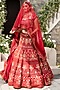 Featuring a red lehenga in silk and net base with hand embroidery. It is paired with a matching blouse and a dupatta.