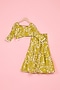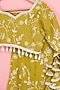 Featuring a yellow lehenga for girls in art silk base with abstract print. It is paired with a choli having print, hand and machine embroidery, including a bag. Style it with cute hair accessories and sandals for a festive occasion or wedding ceremony.