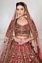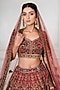 Tanaksh presents an antique pink and wine lehenga in net base with zardosi, nakshi, dabka, sequins and cutdana embroidery. It is paired with a velvet embroidered blouse and a dupatta. Style this designer lehenga set with statement kundan jewellery, potli bag and elegant block heels, Perfect for brides seeking an elevated and timeless bridal look.