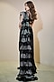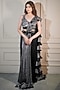 Featuring a black and grey pre-draped saree in imported lycra base with organza ruffled detail. It is paired with a net and rexine blouse having nalki, moti and sequins work. Accentuate it with statement jewellery or heels for weddings or sangeet ceremonies.