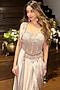 Featuring a gold pre-draped saree in premium chinon base. It is paired with a handcrafted net corset blouse having cutdana and sequins embellishments. Accentuate it with statement jewellery or heels for weddings or sangeet ceremonies.