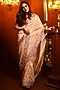Featuring a gold saree in tissue base with resham, gota, dabka and sequins embroidery. It is paired with an embroidered blouse. Accentuate it with silver jewellery and embellished heels for a festive occasion or sangeet ceremony.