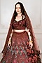 Tanaksh presents a light maroon lehenga in net base with zardosi, nakshi, dabka, sequins and cutdana embroidery. It is paired with a velvet embroidered blouse and a dupatta. Style this designer lehenga set with statement kundan jewellery, potli bag and elegant block heels, Perfect for brides seeking an elevated and timeless bridal look.