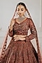 Tanaksh presents a mauve lehenga in net base with 3D laser velvet, cutdana, beads and sequins embroidery. It is paired with an embroidered blouse having a V-neckline and a net dupatta. Style this designer lehenga set with statement kundan jewellery, potli bag and elegant block heels, Perfect for brides seeking an elevated and timeless bridal look.