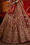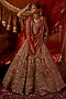 Tanaksh presents a multi-colored lehenga in tissue and velvet base with zari, dori, dabka, sequins and crystal embroidery. It is paired with an embroidered blouse and two dupattas in net and tissue. Style this designer lehenga set with statement kundan jewellery, potli bag and elegant block heels, Perfect for brides seeking an elevated and timeless bridal look.
