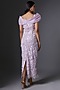 Featuring a lilac dress in organza base with boning drape detail, including beads, thread and chantilly embroidery. Style it with heels and statement earrings for cocktail parties.