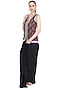 Black Modal Satin Mirror Embroidered Draped Skirt Set