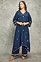 Blue Crepe Mirror Work High-Low Kaftan Set