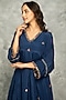 Featuring a blue high-low kaftan in crepe base with mirror work. It is paired with crepe pants. Accentuate the designer set with kundan polki or gold jewellery, embellished heels and a potli for an elegant look, Perfect wear for festive, sangeet or engagement ceremony.