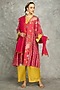 Featuring a hot pink kurta in cotton silk base with digital print. It is paired with pants and a georgette scalloped dupatta. Accentuate it with statement jewellery and heels for a festive occasion or pooja ceremony.