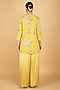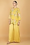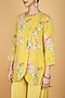 Featuring a lime yellow overlay top in georgette base with floral print and machine embroidery. It is paired with modal silk pants. Accentuate it with delicate jhumkas and embellished juttis. Perfect for festive gatherings, haldi ceremony and traditional daytime events.