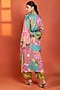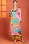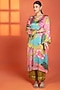 Featuring a multi-colored kurta in modal satin base with floral print. It is paired with pants and a tabby silk dupatta. Accentuate the designer set with kundan polki or gold jewellery, embellished heels and a potli for an elegant look, Perfect wear for festive, sangeet or engagement ceremony.