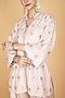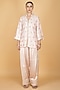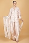 Featuring a nude pink short kurta in cotton silk base with mirror boota embroidery. It is paired with modal silk farsi salwar pants and an organza floral printed dupatta. Accentuate it with delicate jhumkas and embellished juttis. Perfect for festive gatherings, family functions and traditional daytime events.