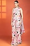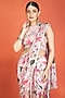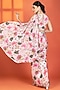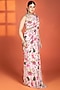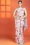 Featuring a pink draped saree in crepe base with floral print. It is paired with a blouse having mirror work. Accentuate the designer set with kundan polki or gold jewellery, embellished heels and a potli bag for a complete look, Perfect wear for your wedding, sangeet or engagement ceremony.