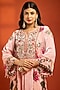 Featuring a pink long kurta in silk base with embroidery. It is paired with lycra churidar pants. Accentuate the designer set with kundan polki or gold jewellery, embellished heels and a potli for an elegant look, Perfect wear for festive, sangeet or engagement ceremony.