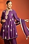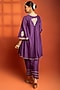 Featuring a purple short flared kurta in cotton silk base with embroidery. It is paired with salwar pants and a sheer net dupatta. Accentuate the designer set with kundan polki or gold jewellery, embellished heels and a potli for an elegant look, Perfect wear for festive, sangeet or engagement ceremony.