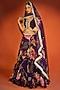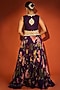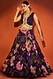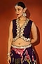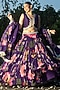 Featuring a purple lehenga in organza base with floral print. It is paired with a raw silk waistcoat having mirror work and an organza placement dupatta. Accentuate the designer lehenga with kundan polki or gold jewellery, embellished heels and a potli bag for a complete look, Perfect wear for your wedding, sangeet or engagement ceremony.