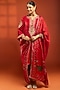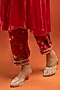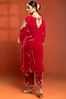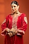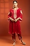 Featuring a red long kurta in silk velvet base with print. It is paired with salwar pants and a tabby silk dupatta. Accentuate the designer set with kundan polki or gold jewellery, embellished heels and a potli for an elegant look, Perfect wear for festive, sangeet or engagement ceremony.