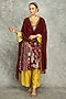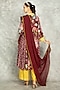 Featuring a wine kurta in cotton silk base with digital print. It is paired with pants and a georgette scalloped dupatta. Accentuate it with statement jewellery and heels for a festive occasion or pooja ceremony.