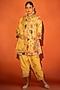 Featuring a yellow angrakha in cotton silk base with floral print. It is paired with pants and an organza dupatta. Accentuate the designer set with kundan polki or gold jewellery, embellished heels and a potli bag for an elegant look, Perfect wear for festive, sangeet or engagement ceremony.
