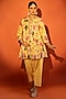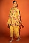 Yellow Cotton Silk Floral Printed Angrakha Set