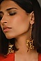 Featuring a pair of gold finish abresque dangler earrings, set in 92.5 sterling silver.