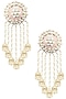 Featuring a pair of 22k gold finish bridal earrings studded with kundan and light pink enamel. It Is enhanced with multi pearl string hangings and jhumkis at the end, set in silver alloy.
