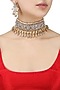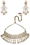 This set features an antique gold finish choker studded with white sapphire, topaz and cultured pearls, set in silver alloy. It comes along with a pair of gold finish earrings studded with white sapphire, topaz and cultured pearls, set in silver alloy.