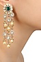 Featuring a pair of 22k gold finish chandelier earrings studded with white saphiires and simulated emerald flower top with champagne pearl drops hanging, set in 925 silver alloy.