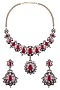 Rhodium Finish Ruby and White Sapphire Filigree Necklace Set