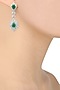 Rhodium Finish White Sapphires and Emerald Stone Earrings