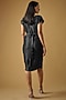 Featuring a black midi dress in modal satin base. It is paired with a hand-beaded belt. Style the dress with hoop earrings and heels for a perfect party look.