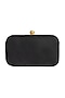 Featuring a black clutch in suede base with aari embellishment. It has a suede lining and a round clasp. This clutch is perfect for an engagement or wedding ceremony.