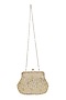 Featuring a gold sling bag in brocade base with floral print and round clasp. It has a satin lining, a gold chain and a matching pouch.