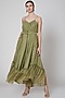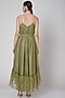 Featuring an olive green maxi dress in handloom blend base with golden zari lines, side pockets and an attached belt. This contains only one piece.