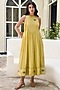 Featuring an oyster yellow pleated dress in modal silk base with floral aari hand embroidery and thread detailing.