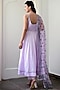 Featuring a plum orchid and pastel green strappy kurta in handwoven cotton base with side pockets. It is paired with matching mulmul pants and a chiffon dupatta having floral hand block print.