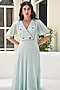 Featuring a powder blue overlapped panelled dress in bangalore silk base with frills, bishop sleeves, and floral hand embroidery.