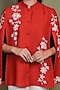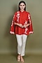Featuring a red cape in wool base with aari embroidery and paisley print. This contains only one piece.