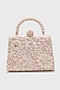 Featuring a blush clutch in poly organza, soft net malmal and viscose satin base with beaded tassel embellishment and brass motif detailing. Our bags add effortless glamour to any occasion, perfect for parties, weddings, and events.