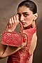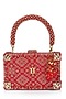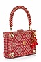 Featuring a dark siam clutch in brocade and brass metal base with hotfix stones and beaded tassel detailing. It has a beaded handle and TT monogram detailing. Perfect for weddings, cocktail parties, festive celebrations, or elegant evening outings.