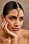 Featuring a 24kt gold plated handcrafted maangtikka studded with zircons and swarovski pearls, set in 92.5 sterling silver. Style with an elegant saree or a refined lehenga to enhance its timeless sophistication, ideal for weddings, festive celebrations or formal evening occasions.