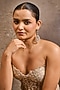 Featuring a pair of 24kt gold plated pear-shaped statement earrings studded with hand-cut zircons, set in 92.5 sterling silver. Style with an elegant saree or a refined lehenga to enhance its timeless sophistication, ideal for weddings, festive celebrations or formal evening occasions.