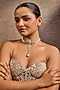 Featuring a 24kt gold plated handcrafted choker necklace studded with zircons, pearl drops and swarovski pearls, set in 92.5 sterling silver. Style with an elegant saree or a refined lehenga to enhance its timeless sophistication, ideal for weddings, festive celebrations or formal evening occasions.