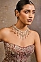 Featuring a 24kt gold plated handcrafted floral necklace studded with zircons and swarovski pearls, set in 92.5 sterling silver. Style with an elegant saree or a refined lehenga to enhance its timeless sophistication, ideal for weddings, festive celebrations or formal evening occasions.