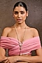 Featuring a 24kt gold plated lariat necklace studded with zircons, pearl drops and swarovski pearls, set in 92.5 sterling silver. Style with an elegant saree or a refined lehenga to enhance its timeless sophistication, ideal for weddings, festive celebrations or formal evening occasions.